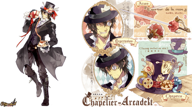 ハートにスペードにの糸巻きでの"不思議の国"要素やチェス盤を模した針刺しと駒の待ち針での"鏡の国"の要素は勿論乍ら、「10/6」の札はイペピンから、黒猫はエンブレムから拾ッてくれたンだろうなァと第二煩悶。帽子に鍵に名前のデザインも可愛いし確り"円舞曲"要素迄!(切り取りBUでは「123」だ何て、花片の追加も愛らしい)"L'erreur de la rose"も華やかで鮮やかで、わッるそうな俺の顔すらも素敵で思わず頬は緩むばかり。立ち絵に関しちゃア早速歩き回らせて頂いてるが、 好いね、此ならポットは落としようも無い!(結んだ掌をひらり振って)